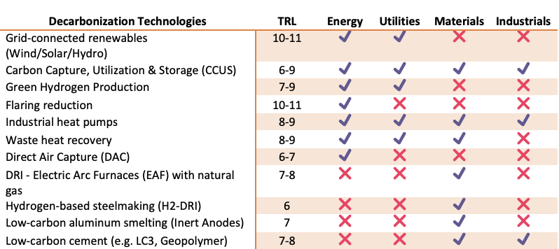 Figure 6: Decarbonization Technologies’ Readiness Levels and Use by Sector