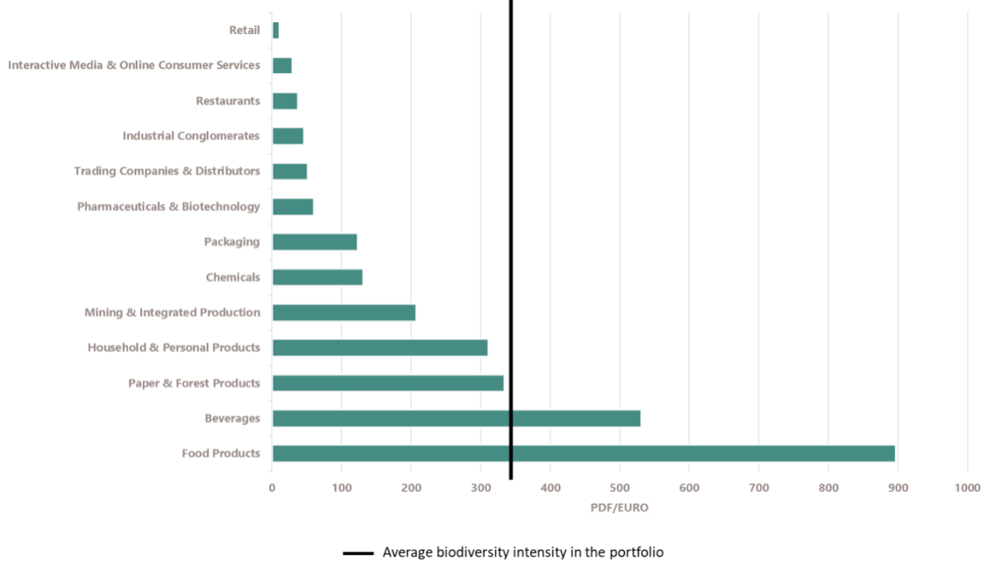 Figure 3: Nature Action 100 Portfolio: Biodiversity Intensity by ESG Rating Industry