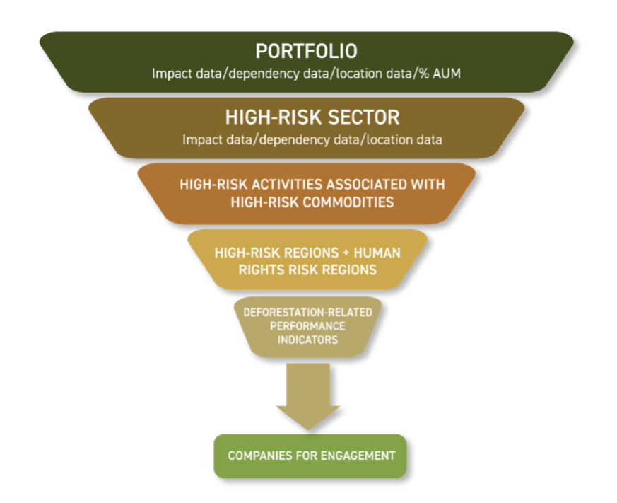 Institutional investors can be exposed to deforestation risk through portfolio companies with activities associated with deforestation-prone commodity production or that are dependent on deforestation-related commodities or through exposure to countries and sectors that are historically known to be connected to deforestation.